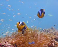 Anemona City is only a 10-minute boat ride from Kizimkazi. The boat anchors are near a plateau about 4-5 meters deep. Swimming over the plateau we can already see many corals, small and large with abundant underwater life. We soon reach a slope where we go from 7 meters to a maximum of 15-17 meters.