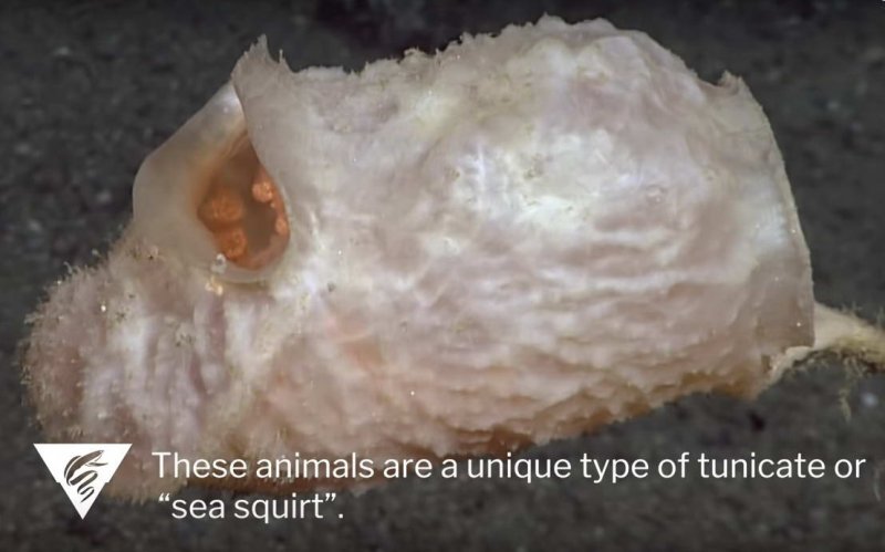New species of sea squirts (Ascidiacea) discovered Culeolus barryi is the newly discovered species of sea squirts recently filmed by researchers of the Monterey Bay Aquarium Research Institute (MBARI). These sedentary animals live slightly above the seabed so they can filter food particles from the water flow. They feed by taking in water through a tube, the oral siphon. The water enters the mouth and flows through mucus-covered gill slits into a water chamber called atrium, then exits through the atrial siphon. The new discovered sea squirts where named after Dr. med. James P. Barry, an ecologist who has done a lot to research regarding deep-sea ecosystems. Sea squirts are among the tunicates and occur worldwide from the shallow shelf seas to the deep sea. The species is covered with a quite rigid tunic; the tunic consists of a kind of cellulose. Their interior houses microfilters (a gill intestine), with which they gain nutrients from the water. Sea squirts are simultaneous hermaphrodites which can also reproduce asexually by bud formation. In their development, they go through a larval stage and then finally settle down.