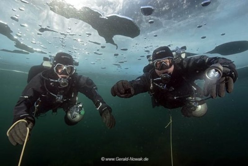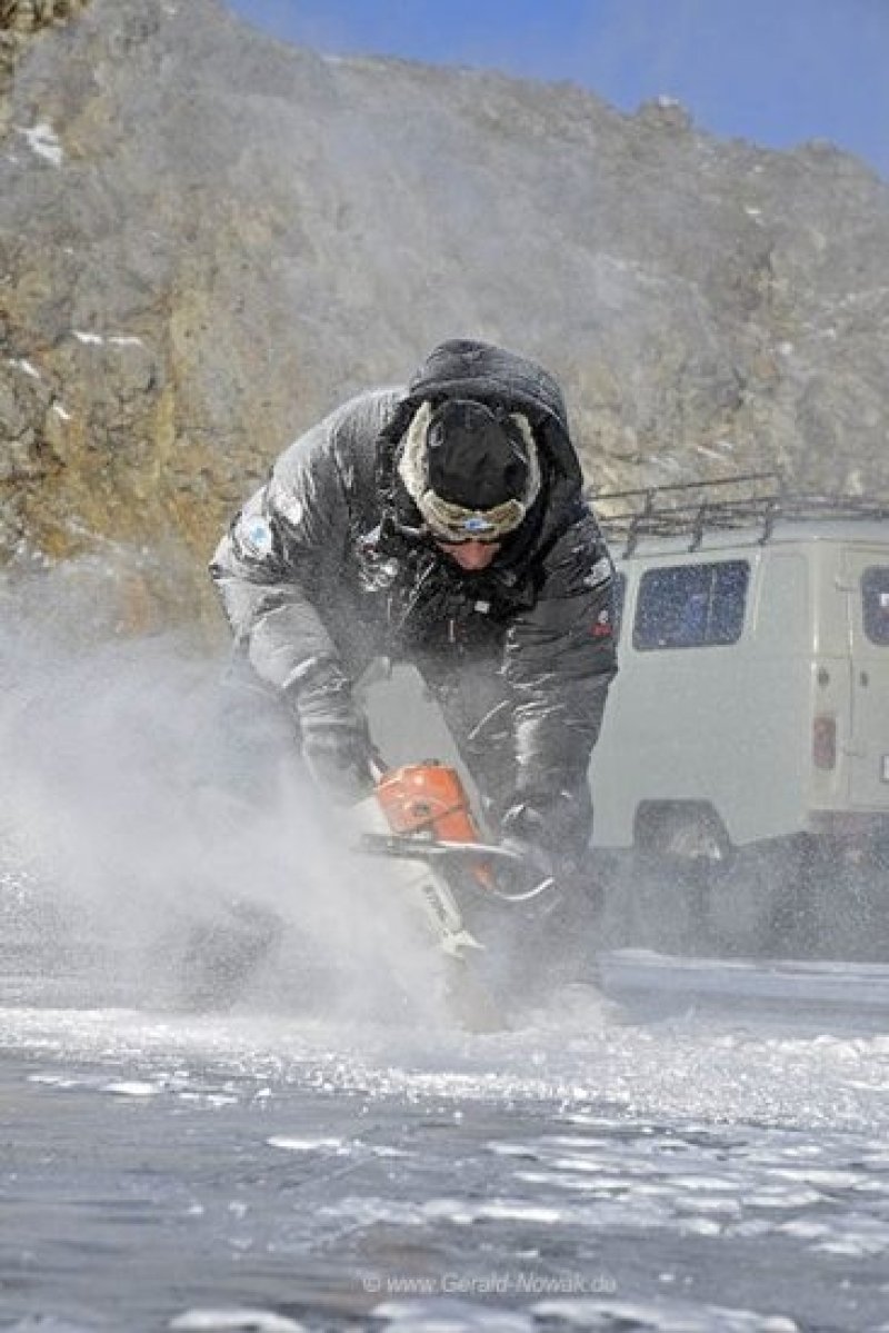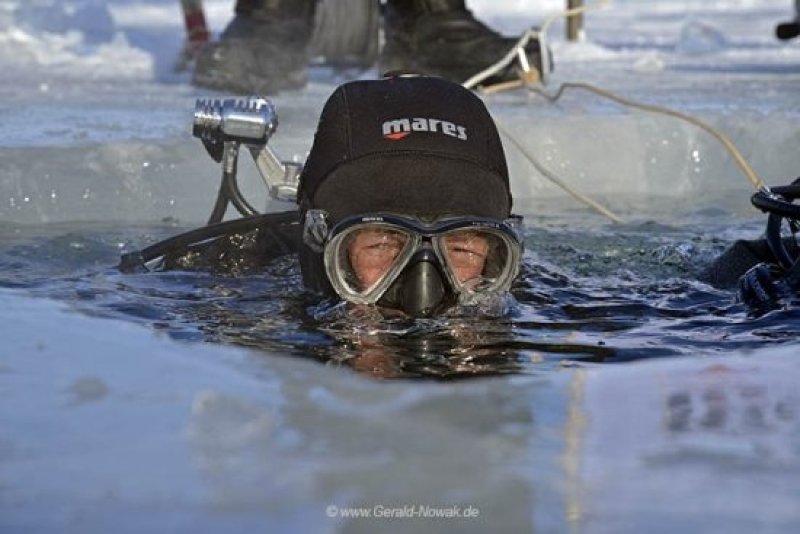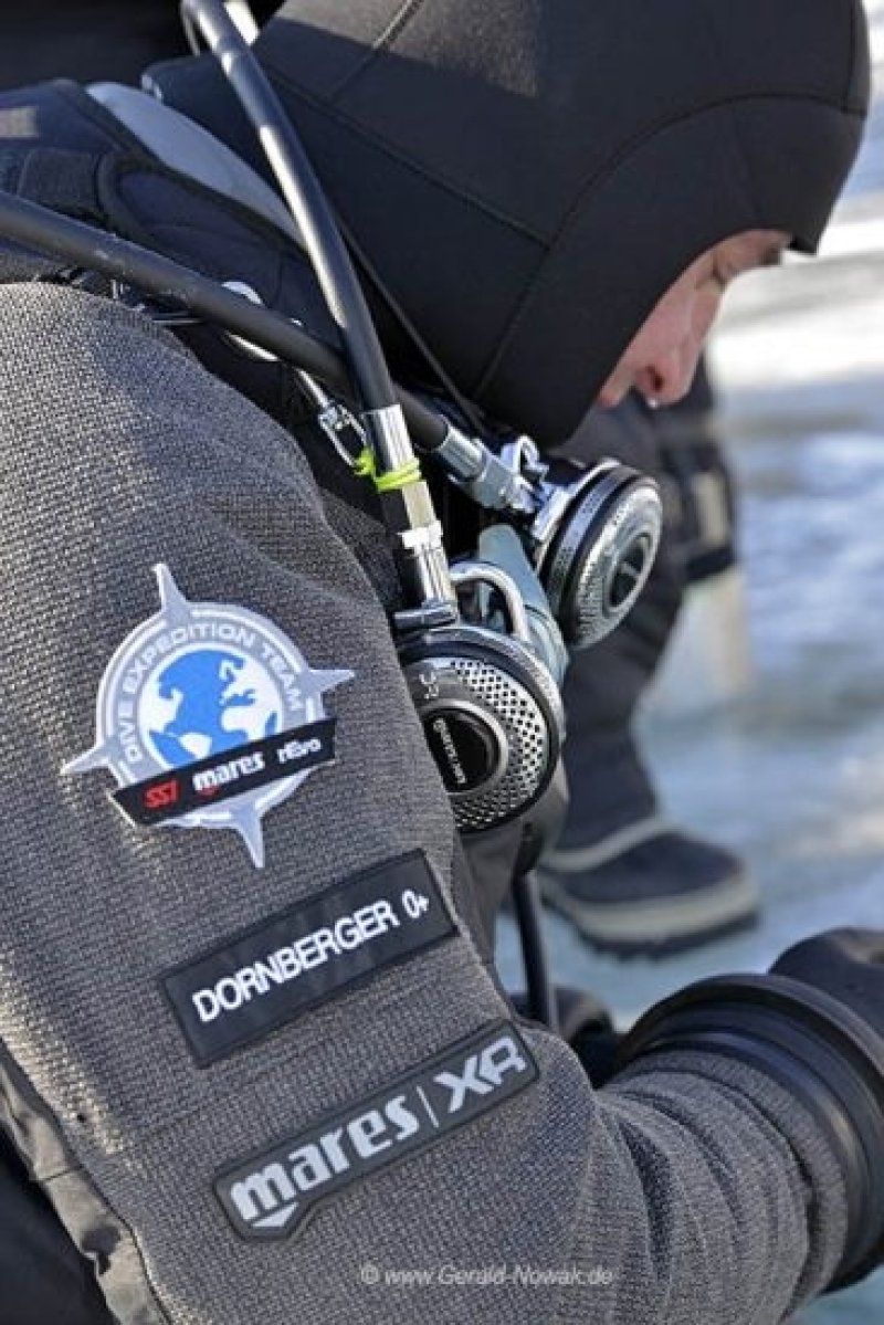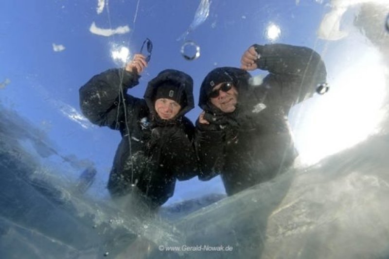 Finally we got under the ice today! The morning got off to a challenging start since the temperature dropped below -28°C. Everything started slowly since we are not used to temperatures that low, however everybody had prepared their equipment the day before meaning we just needed to load lots of tanks, weights and bags onto the various cars. While we drove down from our small village to the lake, the driver stopped just after getting on the ice to hook the famous Russian "Banya" trailer to the UAZ van. It's like hooking your house onto a car and pulling it to your most favorite dive-site in order to make it more convenient. Indeed we all liked getting into the heated trailers in order to change clothes and get into the dive equipment. Before putting on the dive gear we needed to cut openings into the ice layer which was about 1.50 m thick. We all thought this might be a 30-minute job but it actually took us over an hour to get the holes as the should have been. While cutting them we learnt our lesson - that the ice is constantly moving - and we had some scary moments when the ice cracked somewhere on the lake and created a sound on the surface like a thunderstorm. Later under the ice the sound got even more weird and made us realize just how strong and massive nature can be.... As already stated, it was our first day under the ice, and while we were getting used to the cold air we enjoyed how "warm" the 2°C water can be. All the team's experts have hundreds to thousands of dives under their belt but it was like we expected: Everything was new and thrilling, but also everything was different! While experience in diving helps a lot, we also learned that extreme conditions are challenging for both the divers and the equipment! We were all very happy to learn that only the human factor had been the weak point of our expedition while the MARES equipment worked perfectly! Despite our personal shortcomings, we did work incredibly well as a team and helped each other to compensate our weaker moments in this fascinating but incredibly beautiful world! Learn more about our new challenges tomorrow!