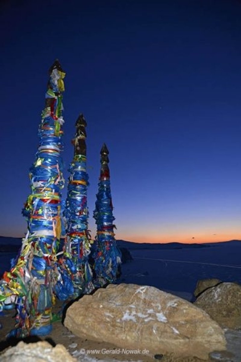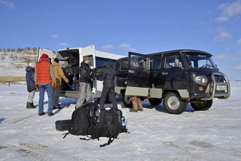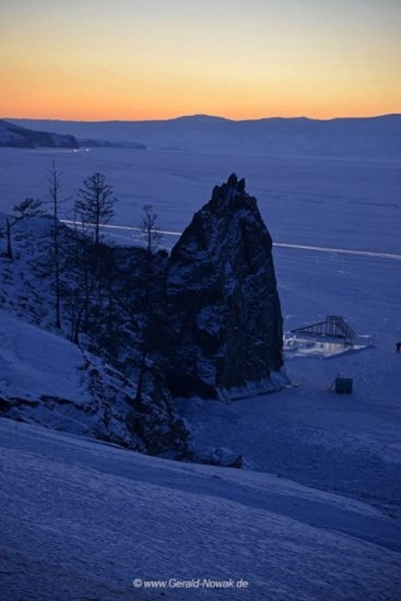 After travelling trough a stunning but hard frozen landscape we reached the ice front of Lake Baikal. During the trip we passed areas with temperatures as low as -35°C! But with our professional NORTH FACE Outdoor equipment these extreme temperatures were not a problem for us at all. At this point we want to give a special thanks to Bosse Ojeberg who did a fantastic job recommending and selecting the right outfits for our expedition. Thanks Bosse! After arriving at the lake we changed cars and got into the famous UAZ van that is considered the ideal car for driving on ice. Getting on board this kind of car is like getting on board a boat. The driver is the "captain" and is responsible for your safety. All these "captains" are very experienced and specially trained for driving on ice. Many accidents are caused by people who drive on their own on the ice and it makes sense to be in good hands. We stopped once during our 40 km trip on the ice at some rocks and did the famous Vodka ritual to honor "Bochan" and ask him for his grace to drive and dive on "his" lake. After checking in to our new hotel, Nikita's Homestead on Olchon, everybody was in a rush to get to the world famous Skala Schamanka, a stunning rock that is considered a holy place for the Buryats, the largest indigenous group in Siberia. We think the day could not have ended better! See you here again tomorrow!