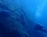 Tauchlevel: Alle Level Maximale Tiefe: 45 m Dieser Tauchplatz bietet drei lebhafte Unterwasserschluchten, in denen es von Leben wimmelt und die eine dramatische, zerklüftete Meereslandschaft darstellen.