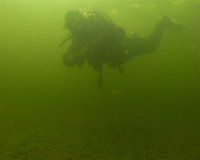 A small, pleasant swimming spot, mostly used by the local population.There is an outdoor toilet and a small jetty.Good visibility normally, except when there is a lot of seed meal in the water.9m deep, a lot of rock formations in places.